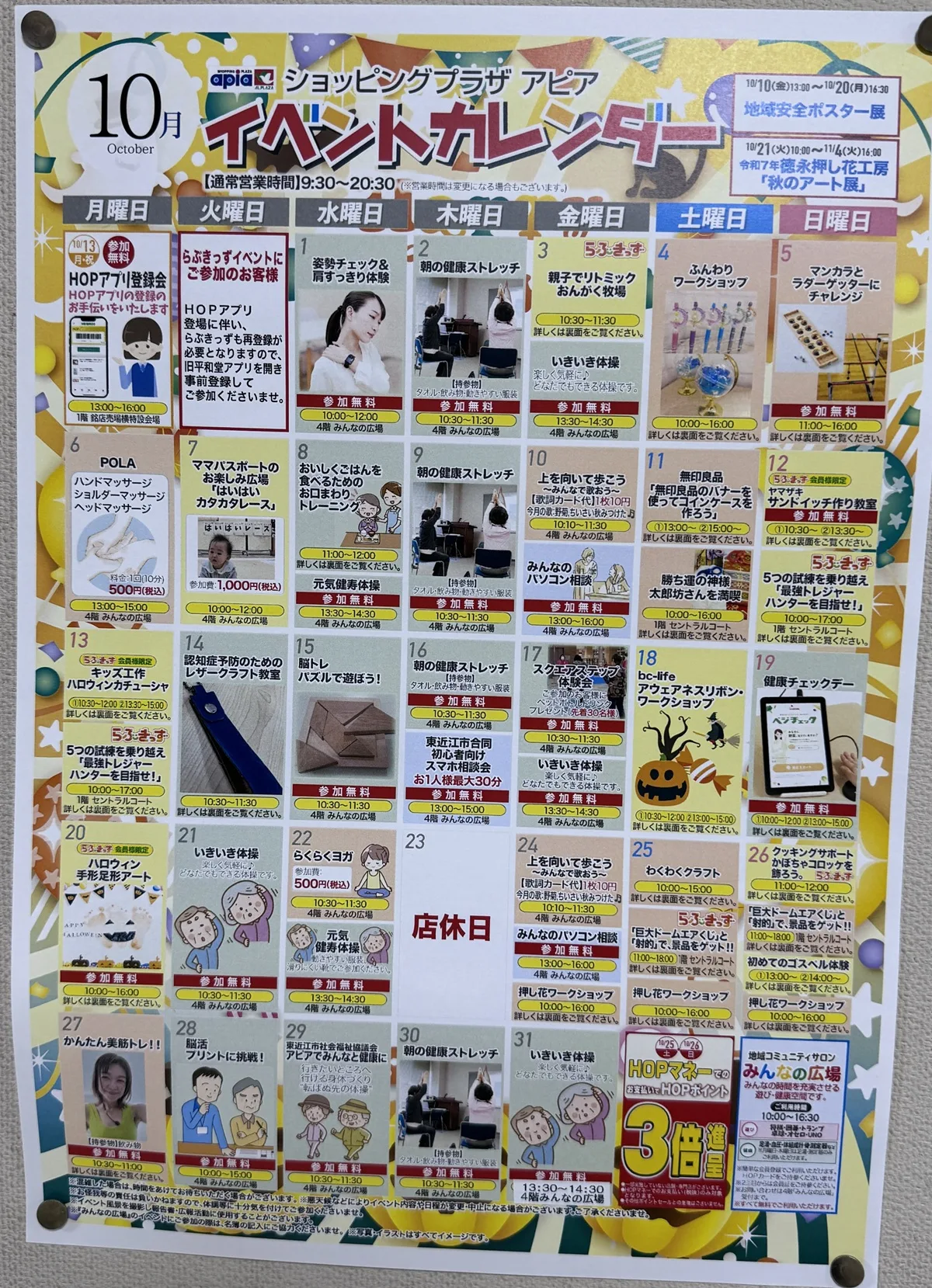 【2025年10月】アル・プラザ八日市(ショッピングプラザアピア)イベント&店休日情報