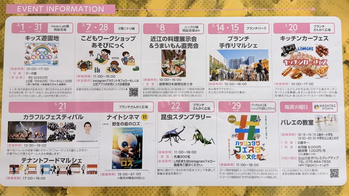 暖かな日差しが増えて、外に出るのが楽しみな季節になってきましたね。大津京にあるブランチ大津京では、3月を通じて家族で楽しめるイベントがかなり充実しているみたいですよ。