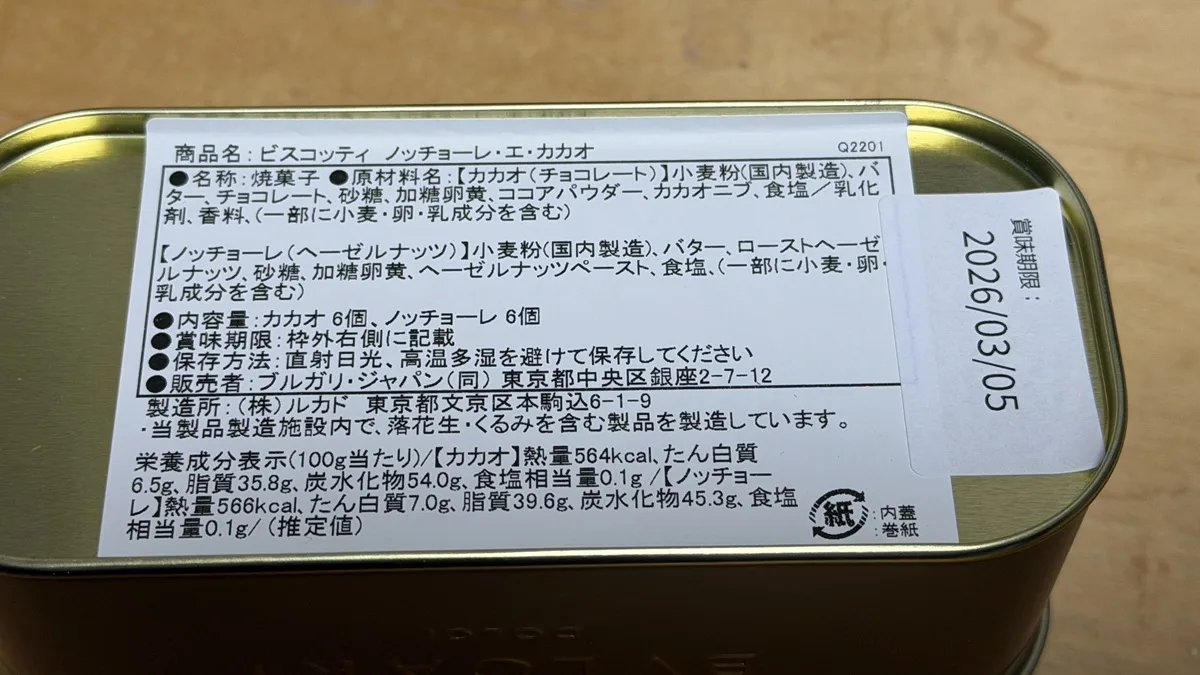 この商品は「 ビスコッティ ノッチョーレ・エ・カカオ」というものです。
