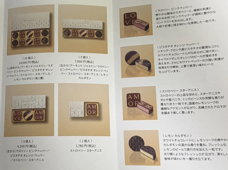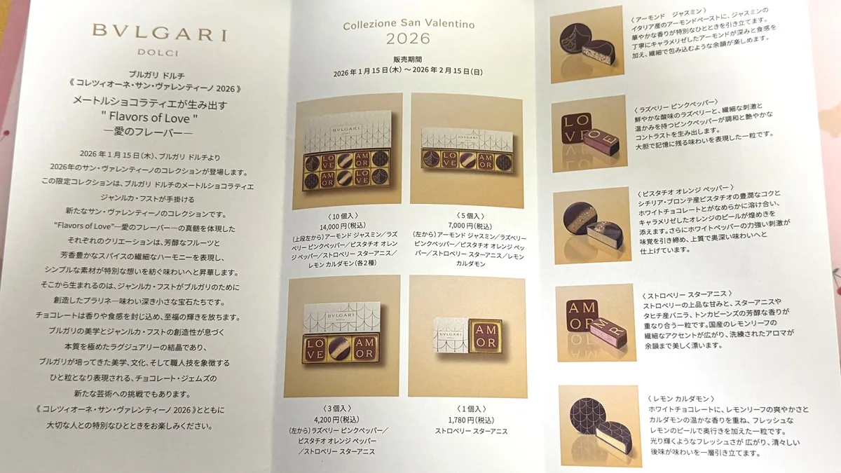 そしてもう一つ、ブルガリのチョコレートが1個入りがあったのですが、撮影もしないで食べてから気が付いたのですが、その商品は【数量限定】コレツィオーネ・サン・ヴァレンティーノ2026 1個入「ストロベリー スターアニス」というものでお値段が・・・1,780円(税込)( ゚Д゚)