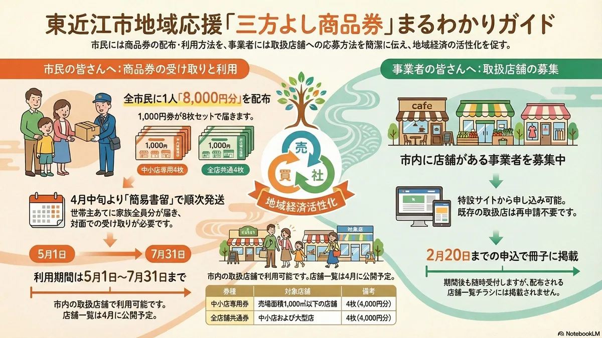 東近江市で「三方よし商品券」の配布が決定!1人8,000円分で家計を応援