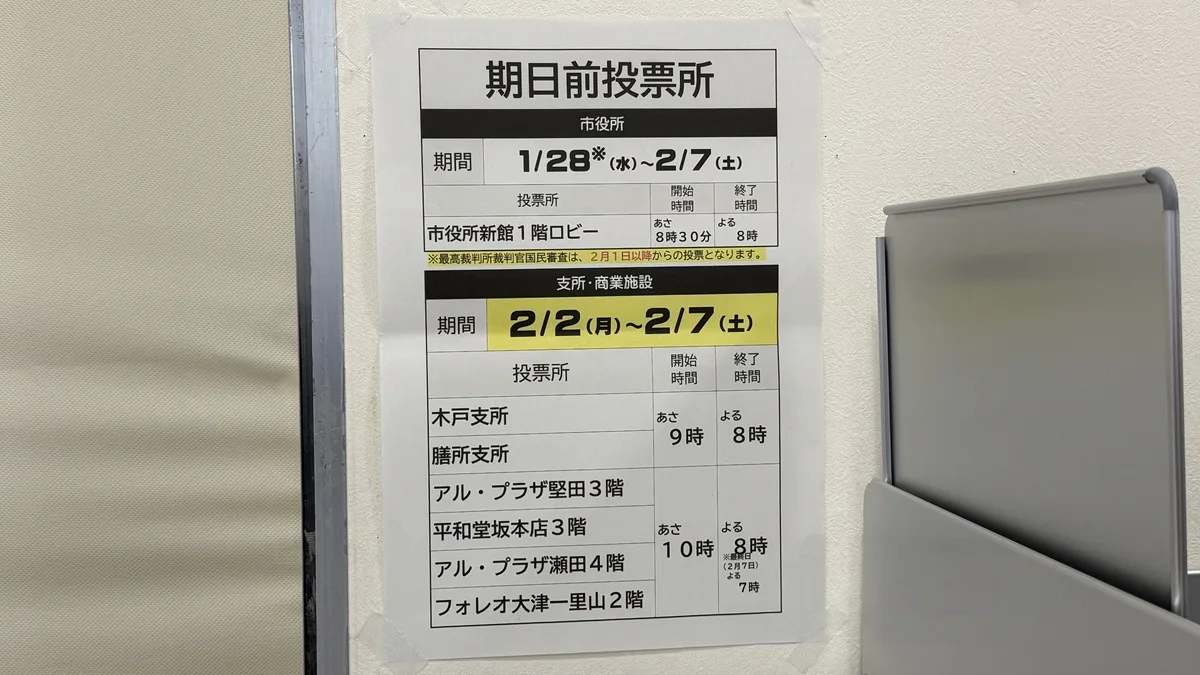 期日前投票の最終日(2月7日)は、例年非常に多くの人で混雑します。待ち時間を短縮したい方は、平日の日中や、商業施設会場がオープンする2月2日以降の早めの時期に足を運ぶのが賢明です。