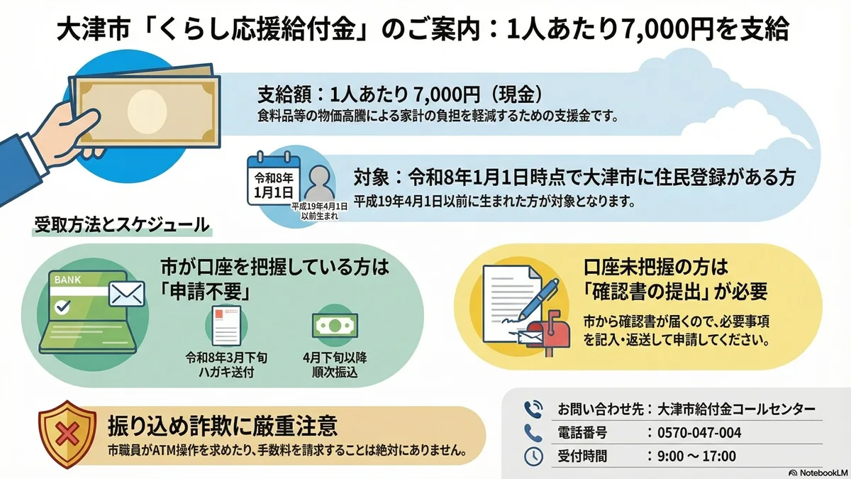 そんな私たちの家計に、大津市からうれしいニュースがあります。今回は、大津市独自の「くらし応援給付金」について、わかりやすくまとめてご紹介しますね。