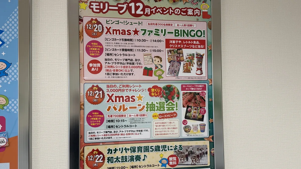 モリーブで12月イベント開催 ビンゴ大会や抽選会、和太鼓演奏