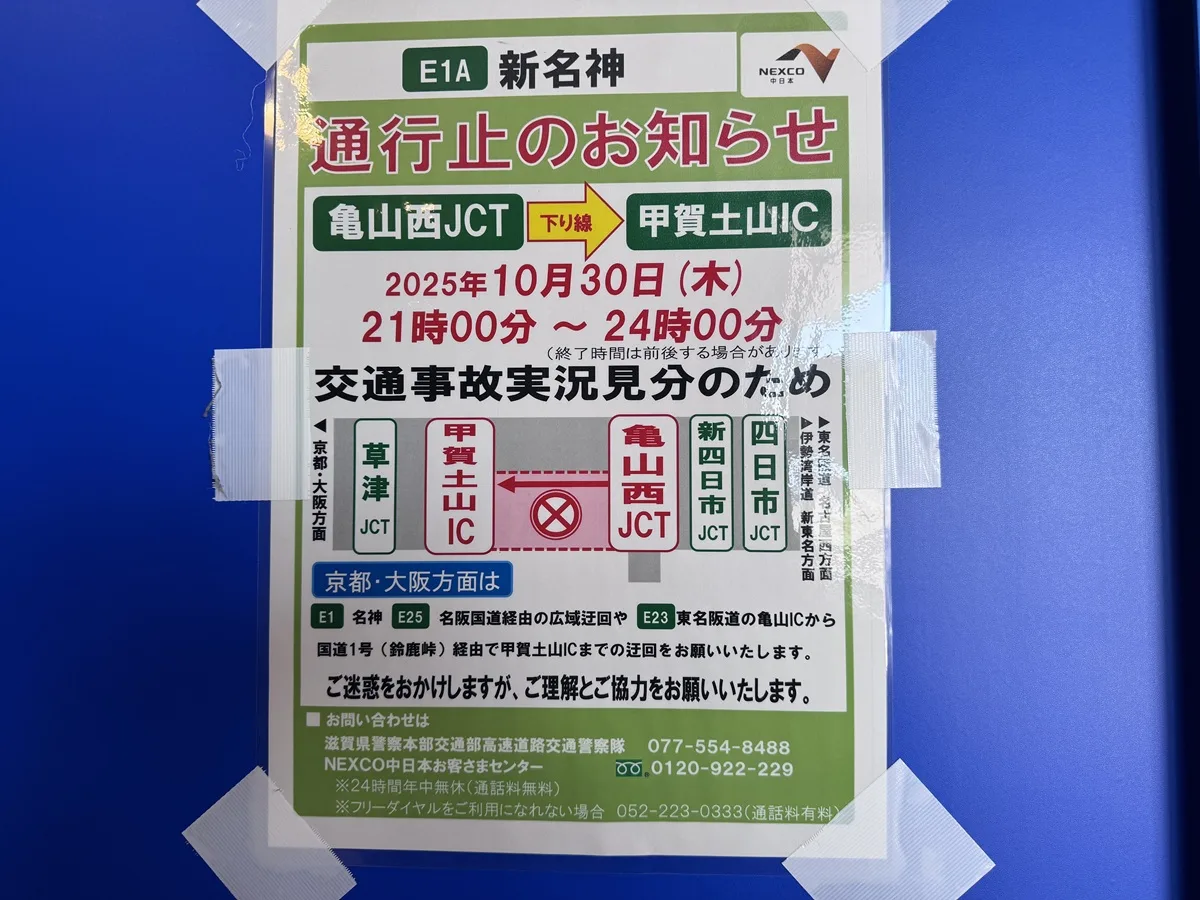 新名神高速道路 通行止めのお知らせ