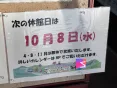 10月8日(水)は休館日ですので、ご利用予定の方はご注意くださいませ。