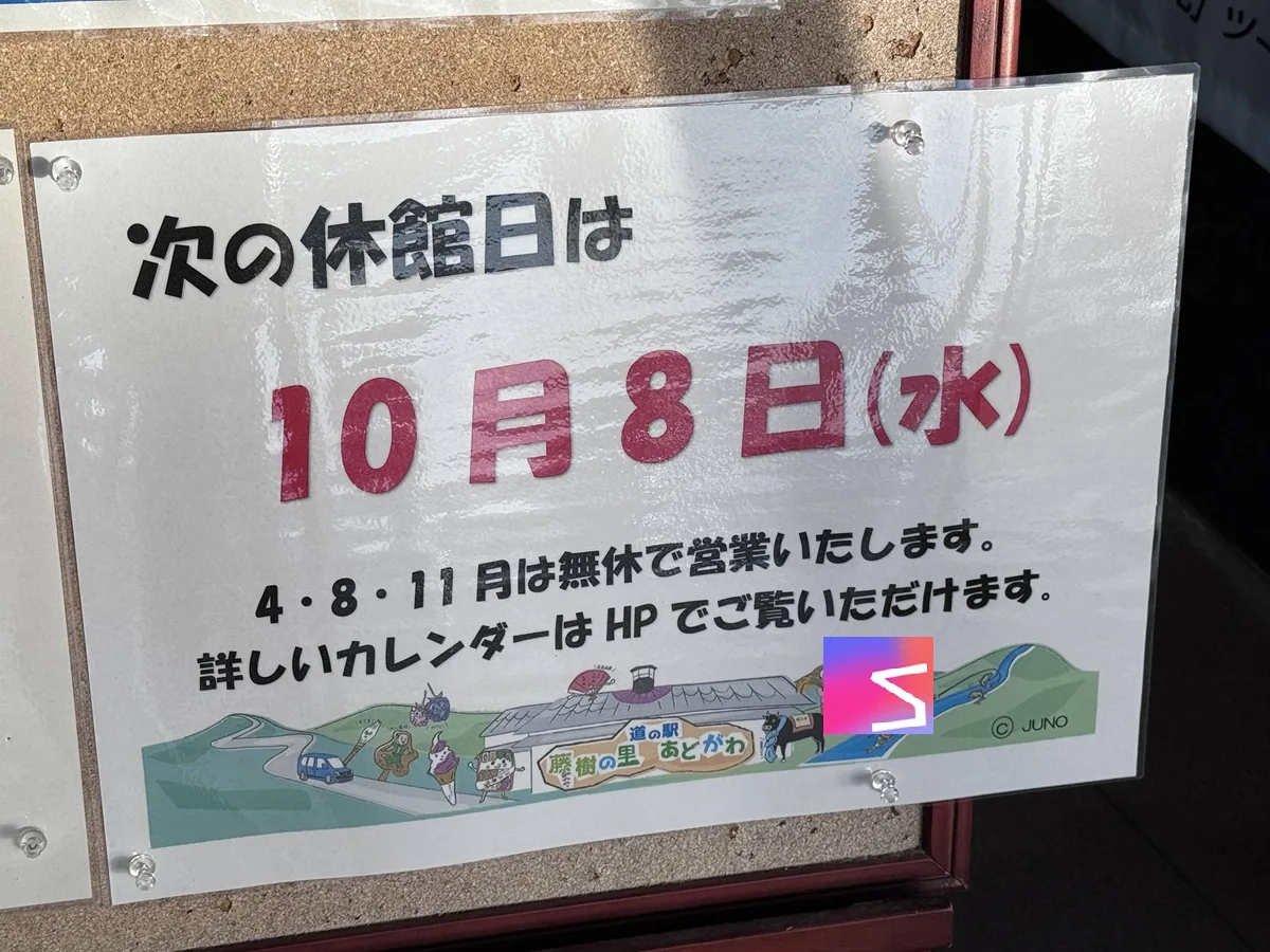 実際に「道の駅 藤樹の里あどがわ」へ行って現地で「休館日のお知らせ」がされていましたのでお伝えします。
